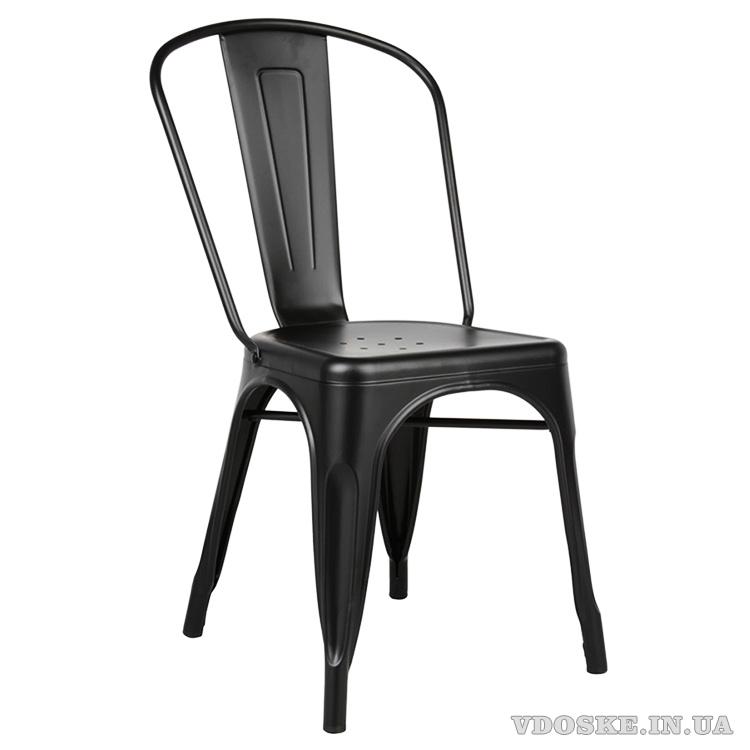 Стілець металевий, фарбований колір чорний, зручна висока спинка, стілець ставиться в стопки, стул, що штабелюється, розмір стільця: ширина 45 см, глибина сидіння 37 см, висота спинки 43 см, загальна висота стільця 84 см, висота від підлоги до сидіння 44 см. Застосування всередині приміщень та на літніх майданчиках (не під дощем та прямим сонячним промінням).