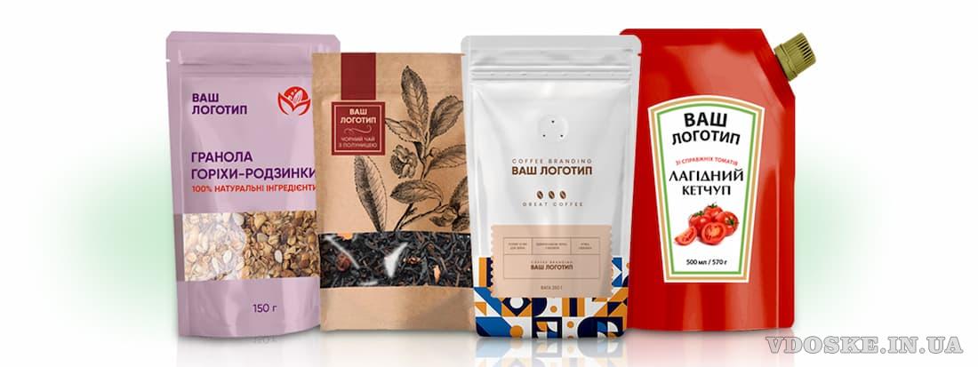 Дой-пак пакети універсальні і при брендуванні: на них можна нанести як повнокольоровий друк, так і трафаретний друк. При необхідності більш економічного варіанту упаковки можна скористатись варіантом наліпки з необхідною інформацією.
