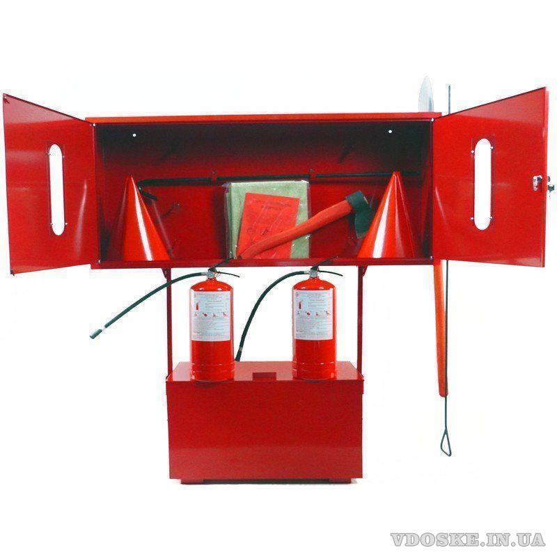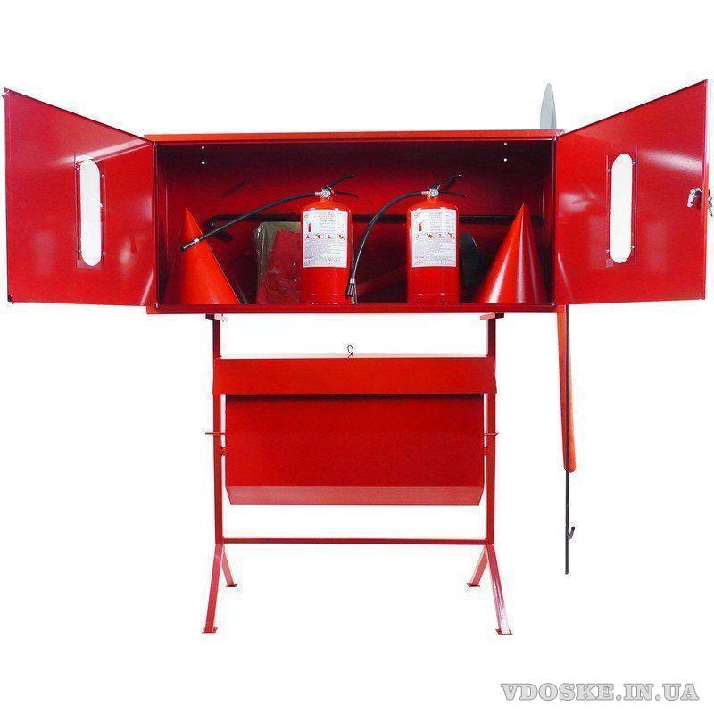 • Пожежний стенд із закритим металевим щитом на замку — додатковий захист від пошкоджень та несанкціонованого доступу. Повна комплектація — 8469 грн.