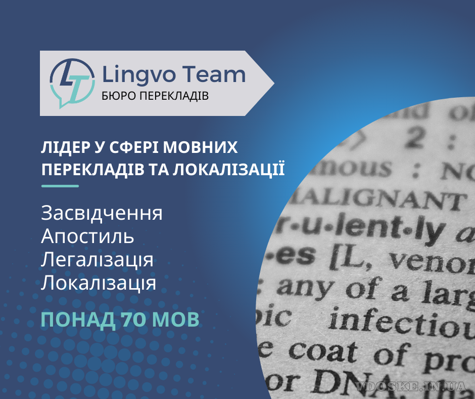 Письмові та усні переклади (понад 70 мов). Засвідчення. Апостиль. Легалізація. Локалізація.