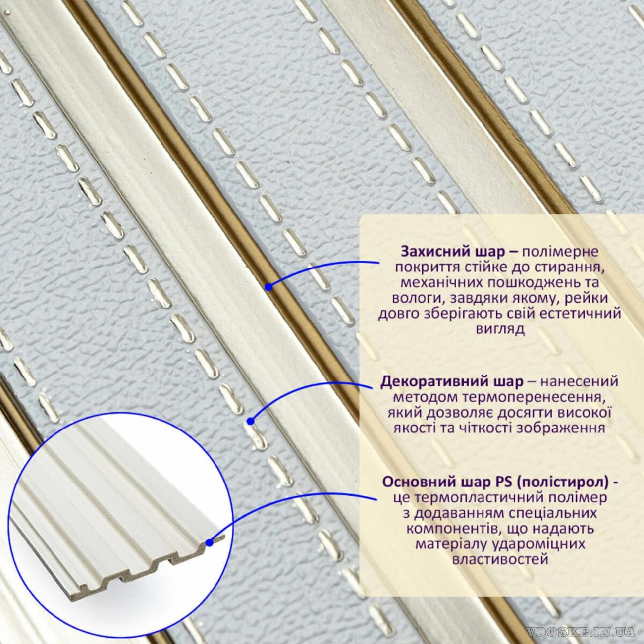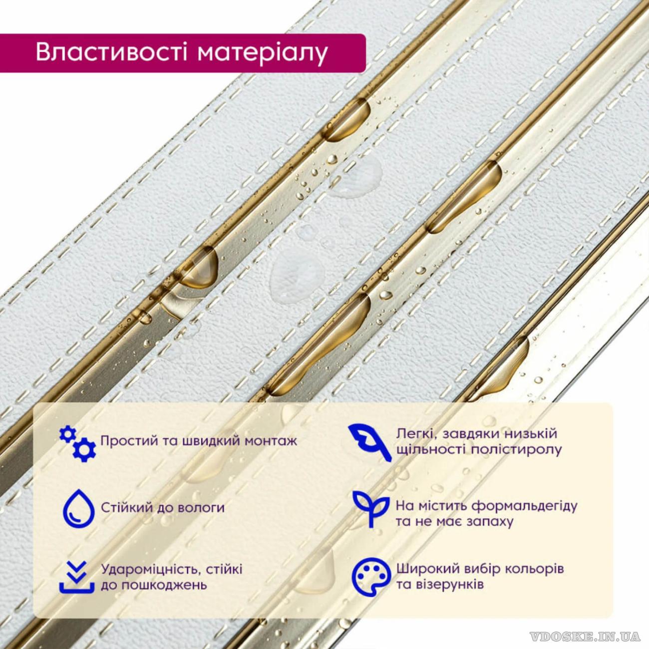1. Матеріал PS (полістирол): панель легка, але міцна. Вона не боїться вологи, не деформується і не розсихається з часом.
