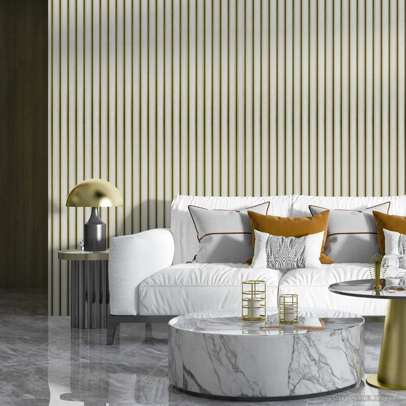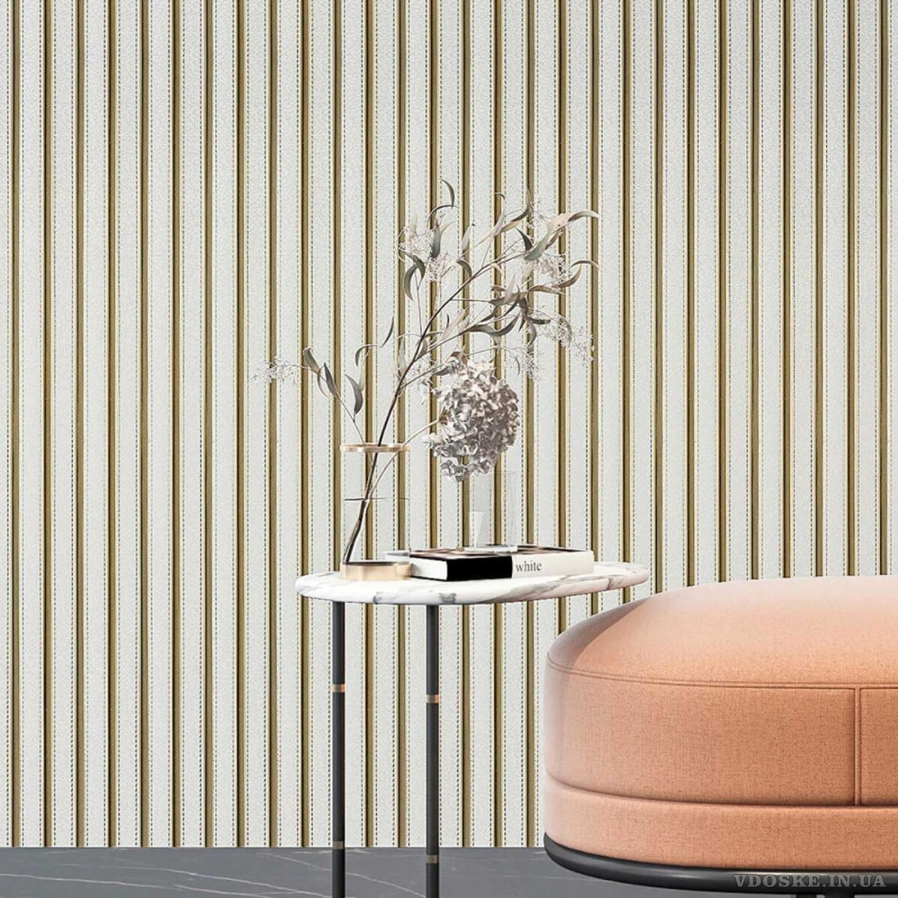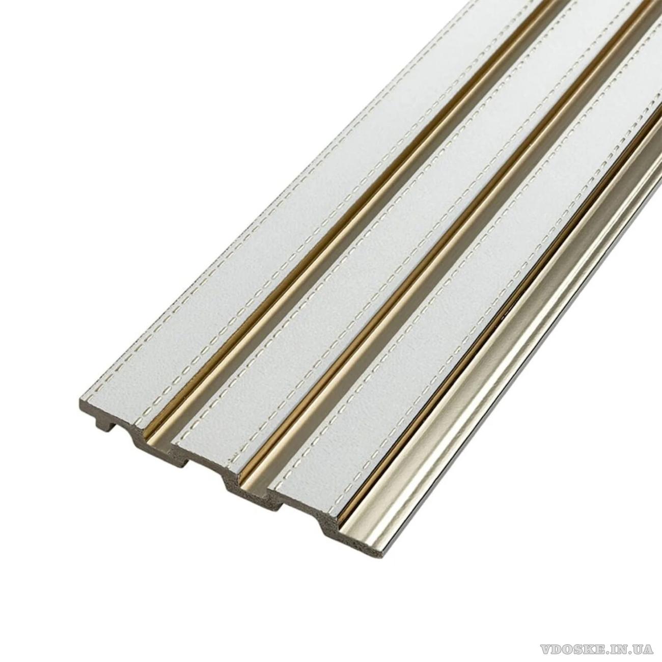 Елегантний вигляд шкіри прошитої нитками стане стильним оздобленням для стін та додасть затишної атмосфери в кімнаті. Декоративна рейка PS «Під білу шкіру із золотом» вишуканий спосіб оформити стіни своїми руками за вигідною ціною.
