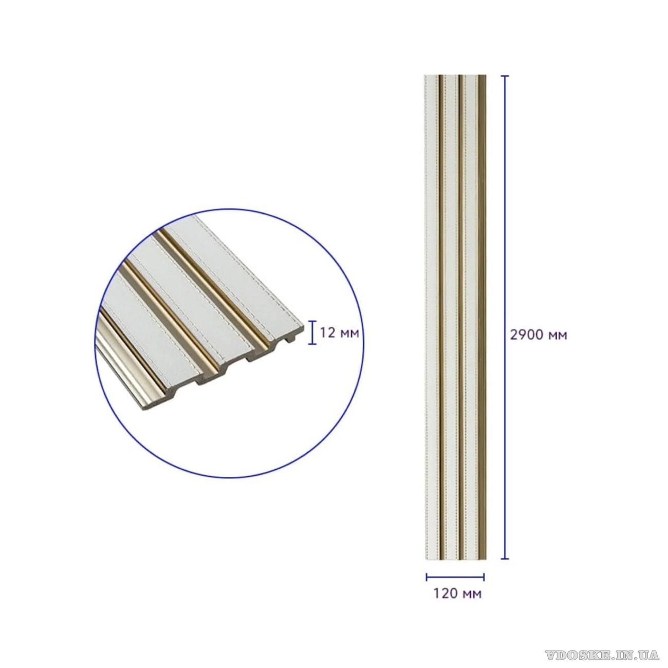 Декоративна рейка PS «Під білу шкіру із золотом» — 2900х120х12мм (SW-00002130)