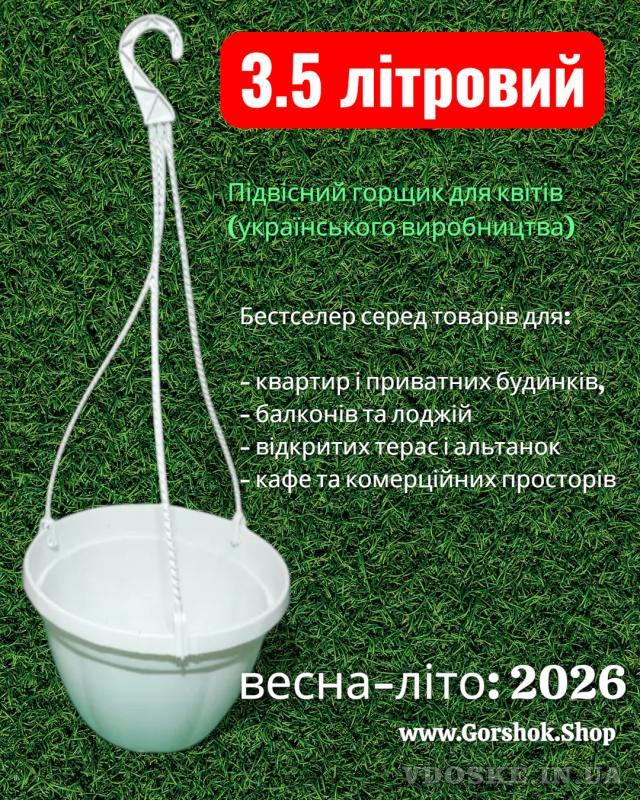 На початку сезону весна–літо 2026 року, коли традиційно зростає попит на товари для озеленення балконів, терас і садів, підвісний горщик з гачком 3,5 л українського виробництва став беззаперечним лідером продажів Інтернет-магазину «Горшок.Шоп».