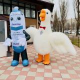 Надувной костюм Гусь обнимусь сшитый под заказ компанией Слон оживает при помощи вентилятора, создает объемный трехмерный вид.